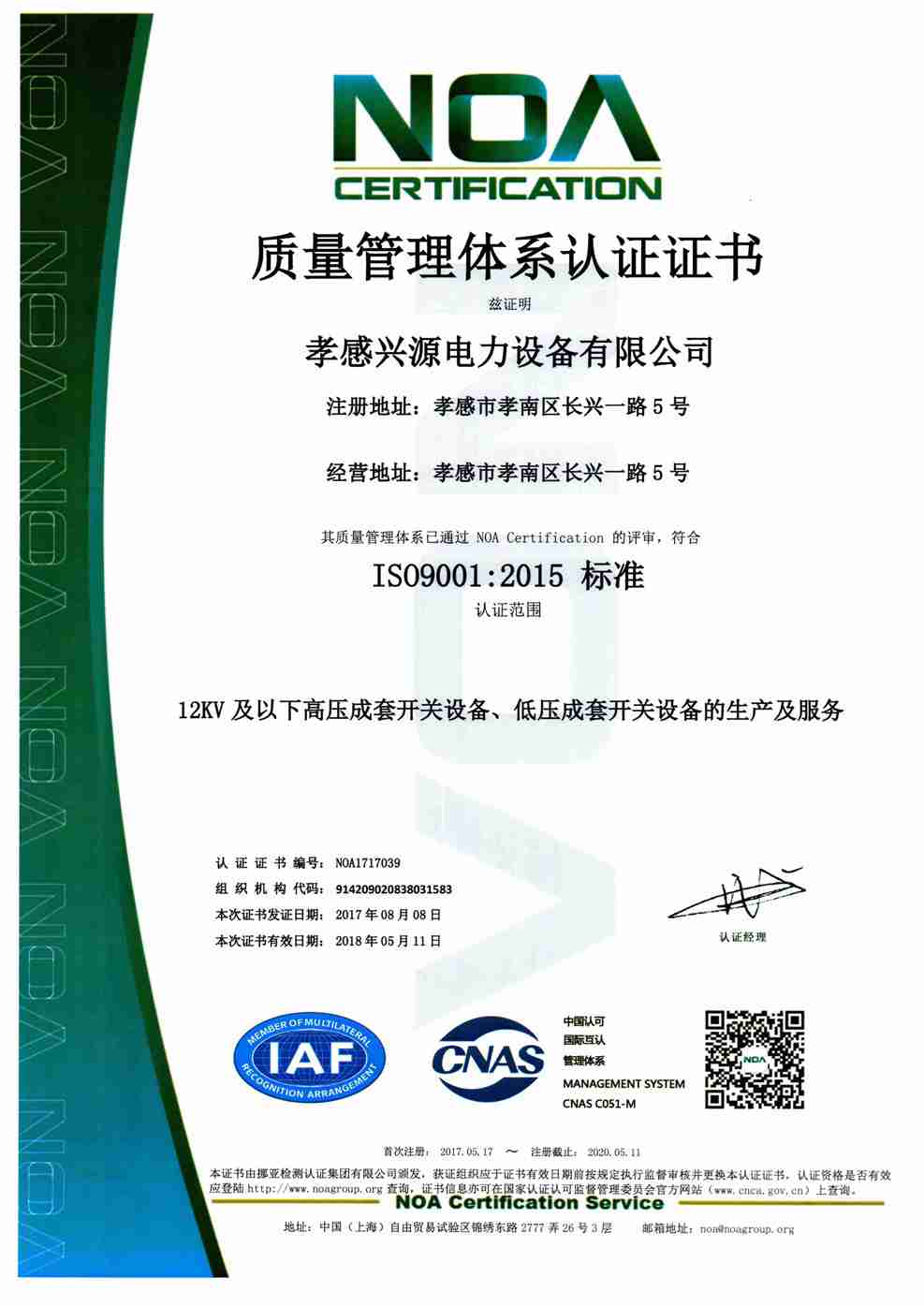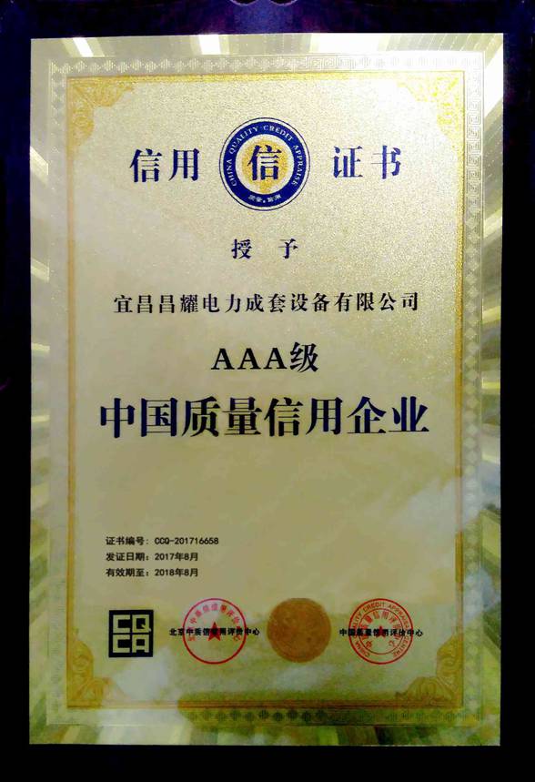 宜昌昌耀電力成套設(shè)備有限公司AAA證書